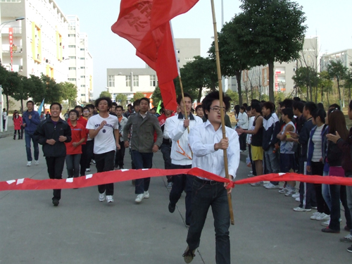 船舶与轮机工程系主任徐得志在活动开始前作动员讲话,勉励同学们牢记历史,树立报国之志。比赛过程中,系自行车协会的10余名成员领航,参赛选手两旁由轮滑社的成员护航,五色彩旗在这些领航、护航的人手中迎风招展,包括教职工在内的160多名参赛选手在校园主干道上奋力奔跑,形成了一道亮丽的风景线。师生们表现出了顽强的毅力和团结的精神,赢得了赛场旁观看同学的阵阵掌声。最后严文学老师、莫秋丽同学分别获得了教师组和学生组的第一名。