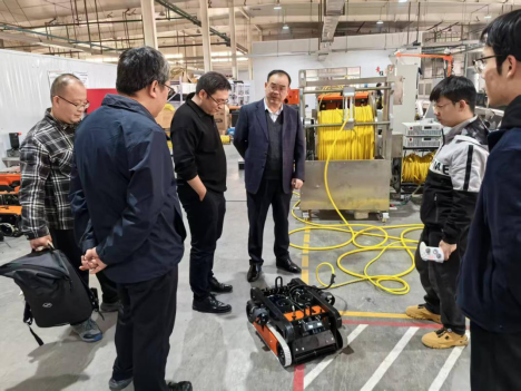 在武建国董事长及相关企业负责人的陪同下,向家文书记一行实地参观了企业的生产制造车间与研发中心,近距离观摩了遥控潜水器(ROV)、自主水下航行器(AUV)等核心产品的生产工艺流程与技术创新成果,期间还亲切走访了在该企业任职的校友,详细询问其工作近况与职业发展,倾听校友对学校人才培养工作的意见建议,并与企业技术骨干、一线生产人员围绕产品性能提升、技术研发路径及行业发展趋势等议题展开深入交流,全面了解了企业的运营模式与技术研发实力。